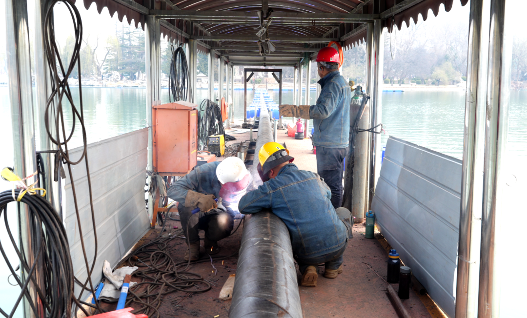 龙潭东湖挖建于上世纪五十年代,作为龙潭三湖中水域面积最大的湖泊,其面积达到19.47万平方米,相当于近28个标准足球场,且岸线曲折,湖面中部还被多处岛屿分割,水流缓慢,污染物容易沉积,溶解氧含量偏低。虽然有南护城河活水作为补水来源,但设备局限性较大,引入的活水仅能润及东岸部分水域。因此,此次工程的核心,便是让南护城河的活水真正流进龙潭东湖的西岸与南岸。