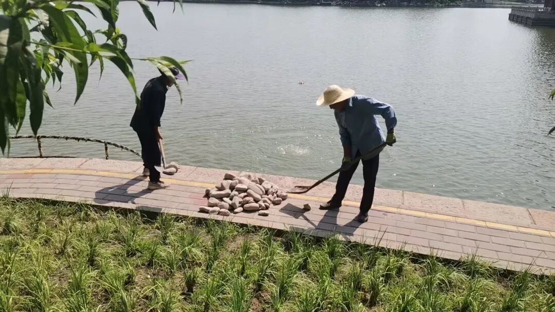 让湖水活起来,更要让湖水净起来。早在生态补水工程启动前,东城区便对龙潭东湖沿湖区域进行改造,整体降土10厘米并抬高路牙至10厘米,打造3米宽渗水层,让雨水就地消纳净化,减少尘土、枯叶随地表径流入湖;将喷灌系统改成微喷系统,既省水又避免大水漫灌冲刷土壤;岸边新栽900多平方米苔草、观赏草和马蔺,发达的根系固土保水,既美化了湖岸,又筑牢了湖体防护的“第一道防线”。